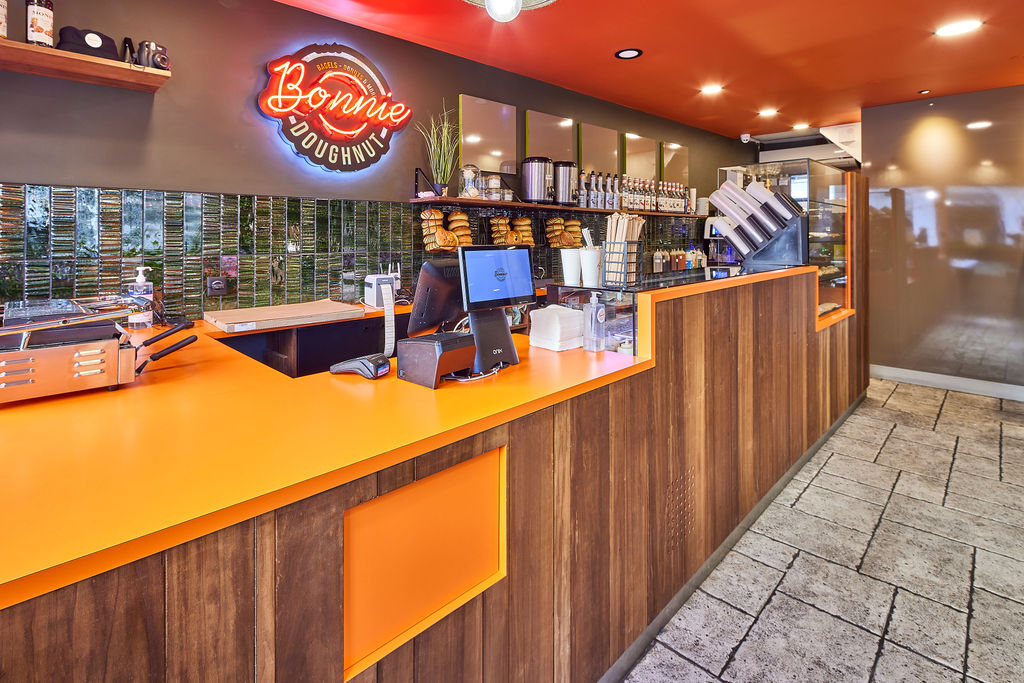 ConceptRenoDeco a réalisé la transformation complète de Bonnie Doughnut, créant un espace moderne, élégant et chaleureux qui met en valeur les produits de qualité de l’établissement.
