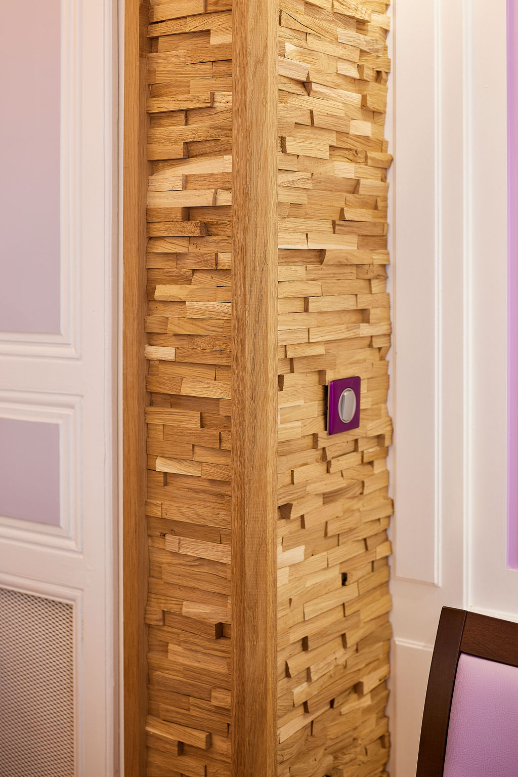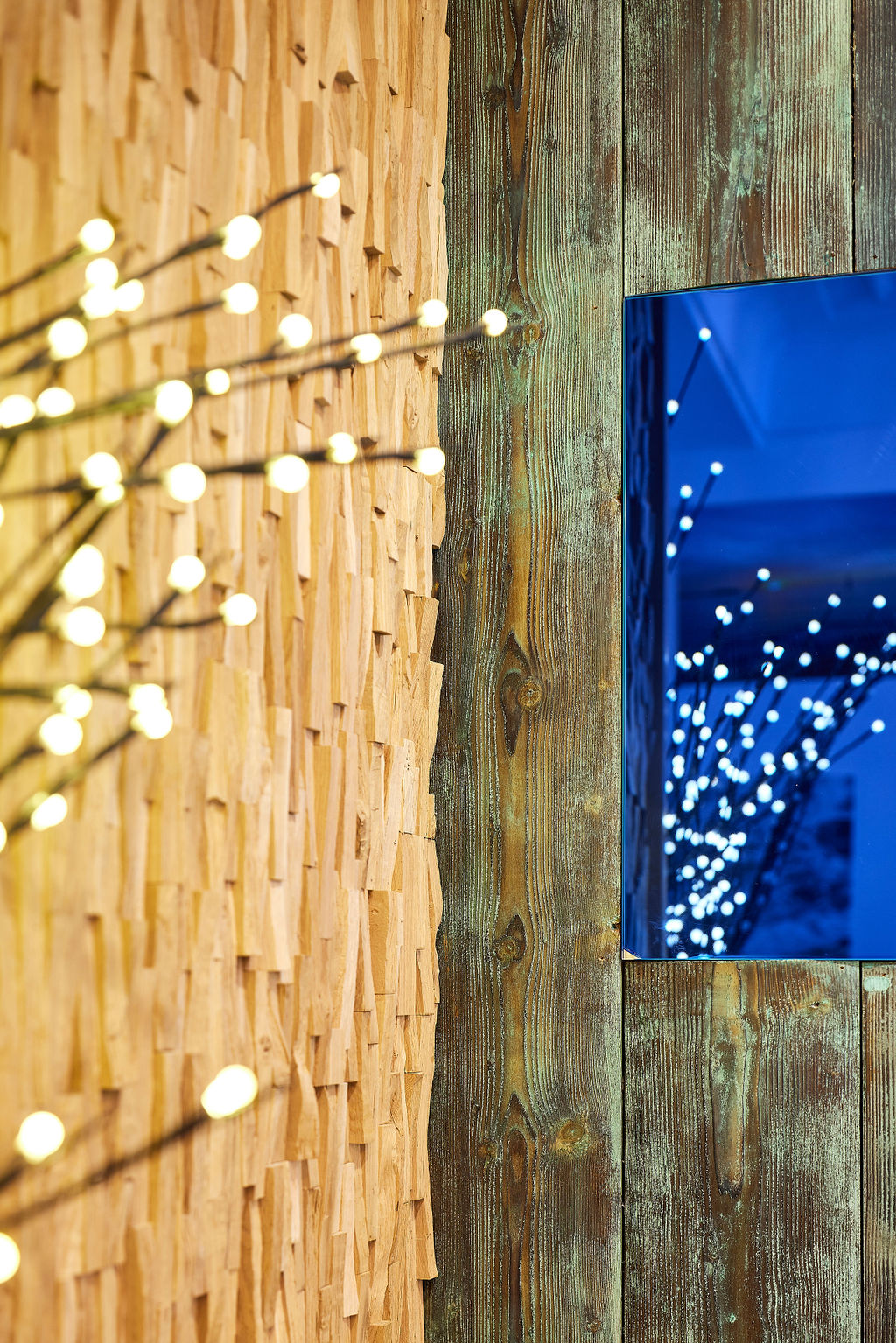 Grâce à un choix minutieux de matériaux, de couleurs et de textures, une atmosphère unique a été créée. Chaque élément sublime les produits de qualité et l’univers de La Tourelle : le bar sur mesure, le mobilier de salle, les habillages muraux décoratifs.